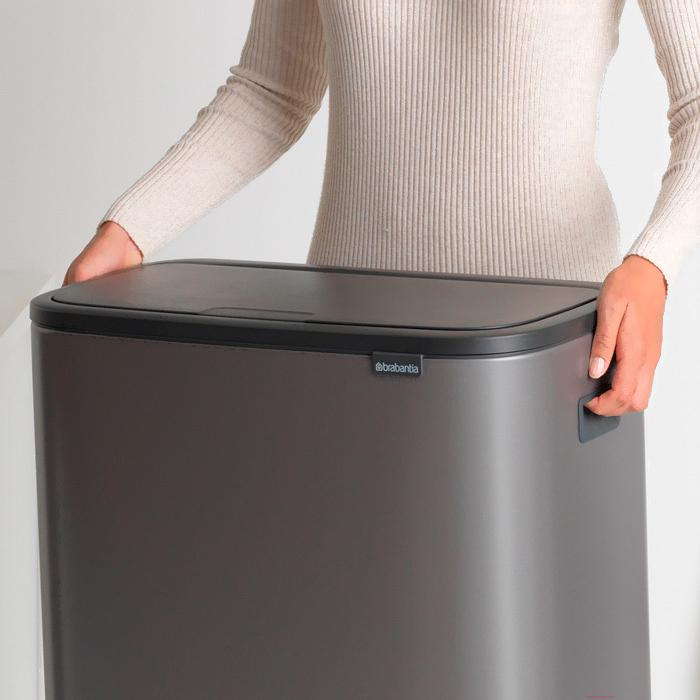 Мусорное ведро Brabantia Bo Touch Bin / 223068 (60л); Особенности конструкции: крышка, съемный контейнер; Объем: 60 л; Материал: пластик, металл; Размещение: напольное; Длина/диаметр: 54.5 см; Назначение: для помещения