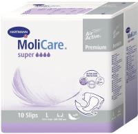 Подгузники для взрослых MoliCare Premium Super Soft (L, 10шт); Пол: унисекс; Кол-во в упаковке: 10 шт.; Обхват талии: 120;150 см; Уровень впитываемости: 4 капли; Размер взрослых подгузников: 3 (Large)