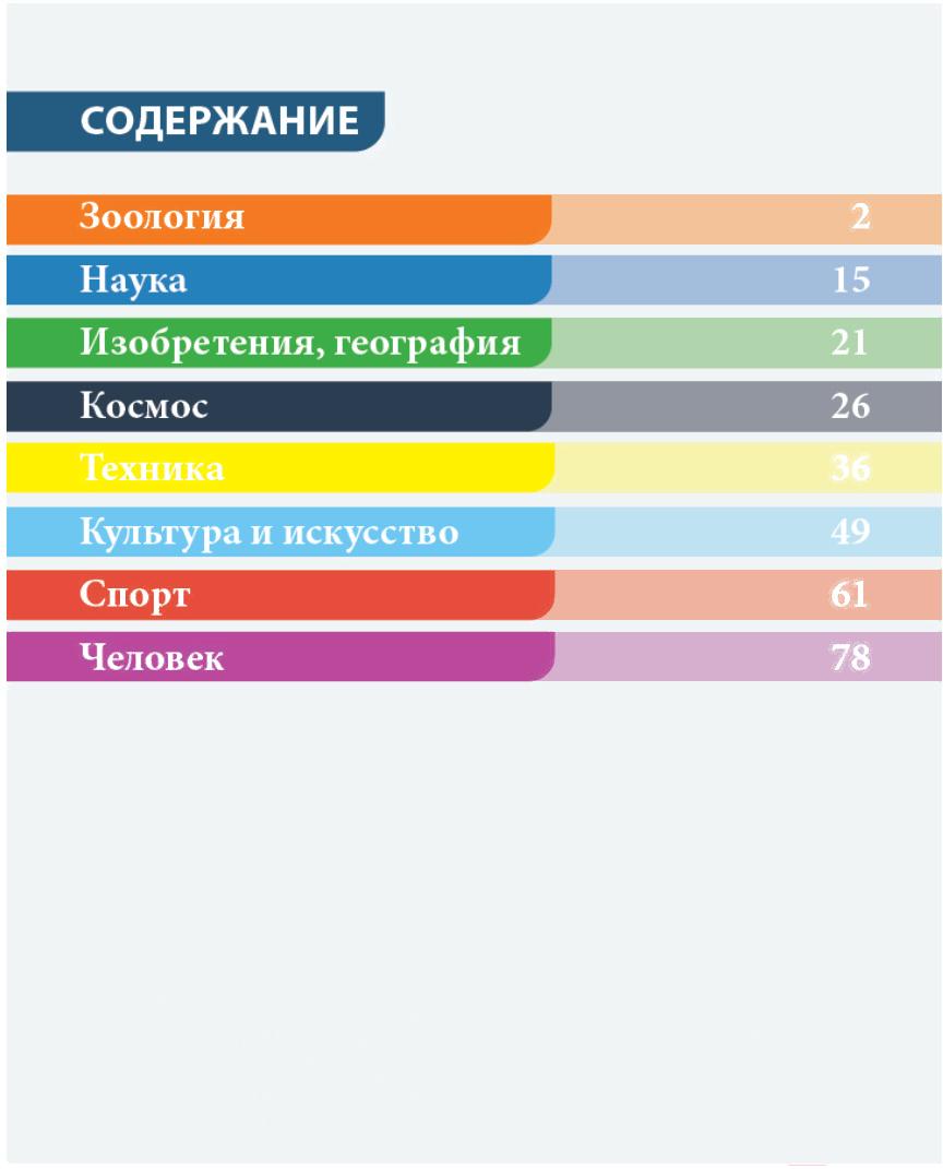 Область знанийгеография, народы мира, животные, птицы, насекомые, растения, искусство, культура, космос, астрономия, наука, технологии, изобретения, подводный мир, тело человека, медицина, техника, транспорт, игры, спорт