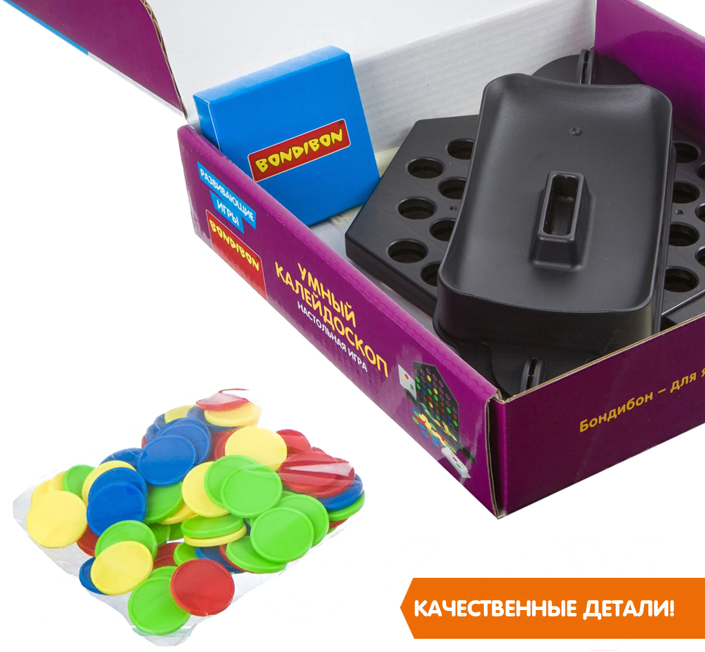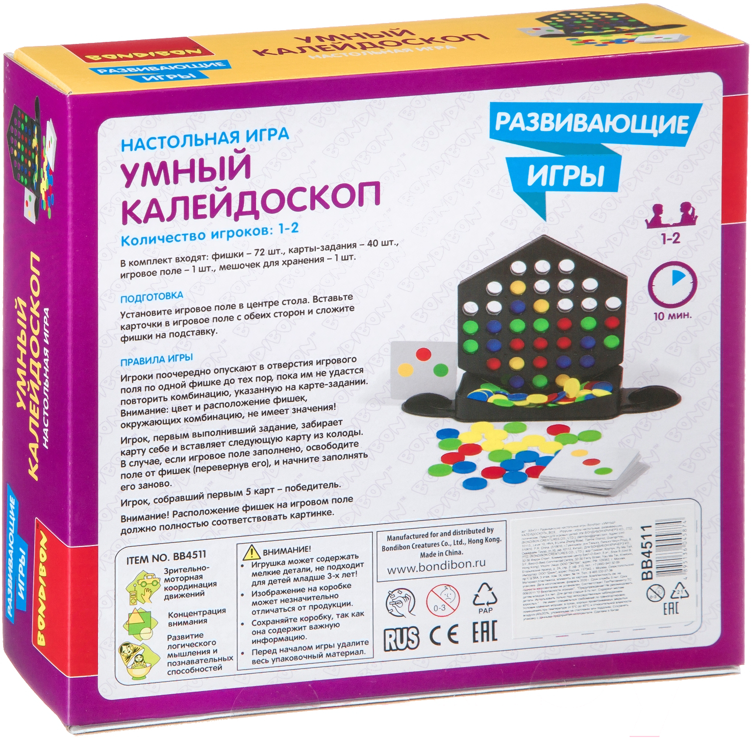 Настольная игра Bondibon Умный калейдоскоп / ВВ4511; Тип: настольная игра; Механика: абстрактная; Навыки: внимание, сообразительность, концентрация; Тематика: веселая; Оформление: базовая игра; Кол-во игроков: 1;2; Время игры: 10;10 мин.; Возраст: 6; лет