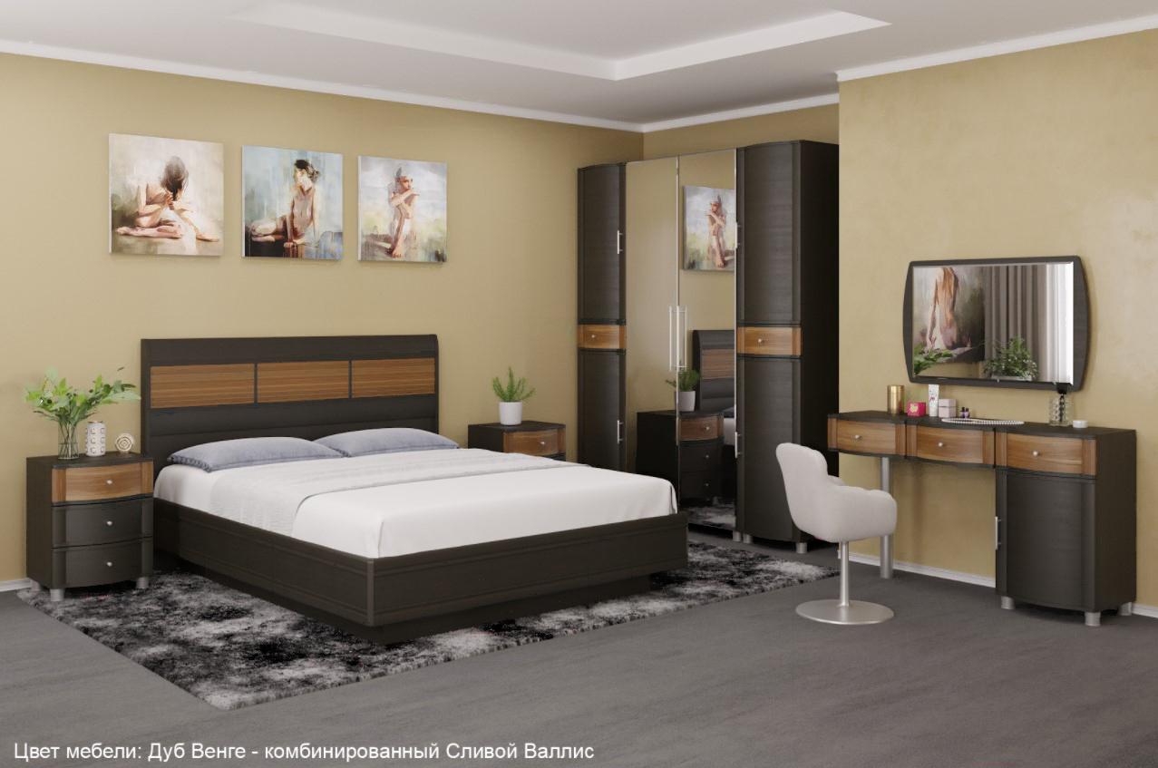 Двуспальная кровать Дольче Нотте КР-1803-ВЕ-Л 160x200 (дуб венге комбинированный/слива валлис)