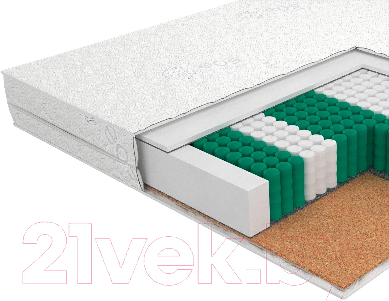 Матрас EOS Аспект 33 100x190 (жаккард); Двусторонний матрас: есть; Конструкция: несимметричный; Степень жесткости: среднемягкий, средний; Материалы: кокосовая койра, хлопковый войлок, пеноматериал (FoamLux); Макс. нагрузка на одно спальное место: 130 кг; Базовый блок матраса: Correct 7 zone (EOS); Цвет: белый, с рисунком