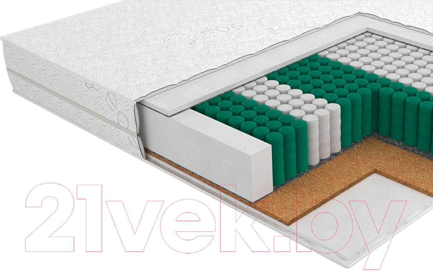Матрас EOS Аспект 30 130x200 (жаккард); Двусторонний матрас: есть; Конструкция: несимметричный; Степень жесткости: среднемягкий, средний; Материалы: кокосовая койра, пеноматериал (FoamLux); Макс. нагрузка на одно спальное место: 130 кг; Базовый блок матраса: Correct 7 zone (EOS); Цвет: белый
