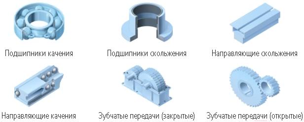 • Назначение подшипники (качения, скольжения), зубчатая передача (закрытые, открытые), направляющие скольжения