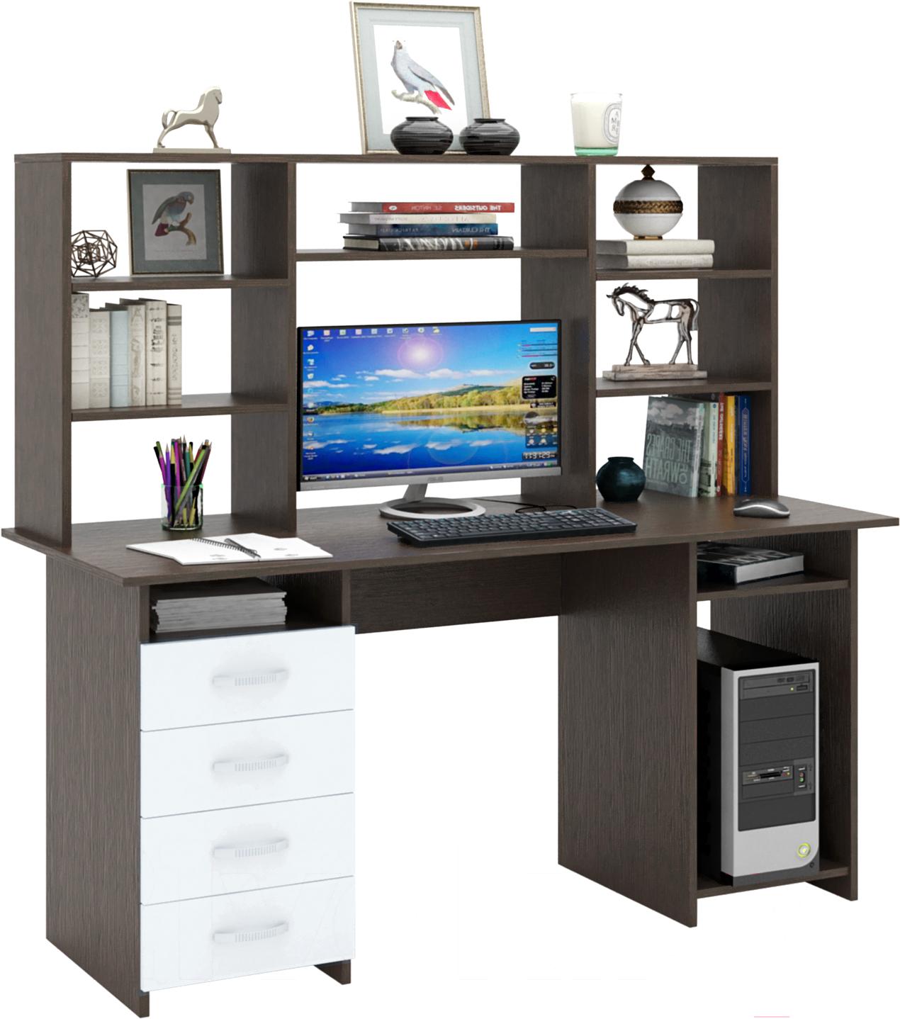 Компьютерный стол MFMaster Милан-6 / М-6Н-ВБ (венге/белый); Тип стола: компьютерный стол; Конструкция: с надстройкой; Материал столешницы: ЛДСП; Материал опор: ЛДСП; Ширина: 60 см; Длина: 145 см; Высота: 145 см