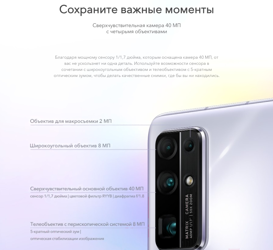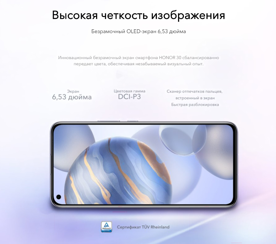 Смартфон Honor 30 8GB/128GB / BMH-AN10 (черный); Тактовая частота процессора: 2580 МГц; Версия операционной системы: Android 10.0; Диагональ экрана: 6.53 "; Емкость аккумулятора: 4000 мАч; Кол-во SIM-карт: 2; Разрешение экрана: 2400×1080; Оперативная память: 8 Гб; Постоянная память: 128 Гб; Разрешение камеры: 40 Мп