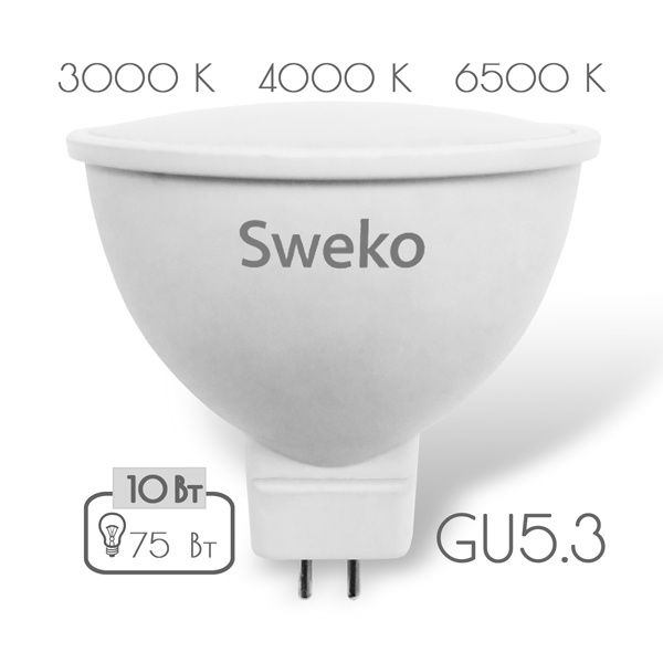 Лампочка Sweko 42LED-MR16-5W-230-4000K-GU5,3, Холодный свет 5 Вт, Светодиодная