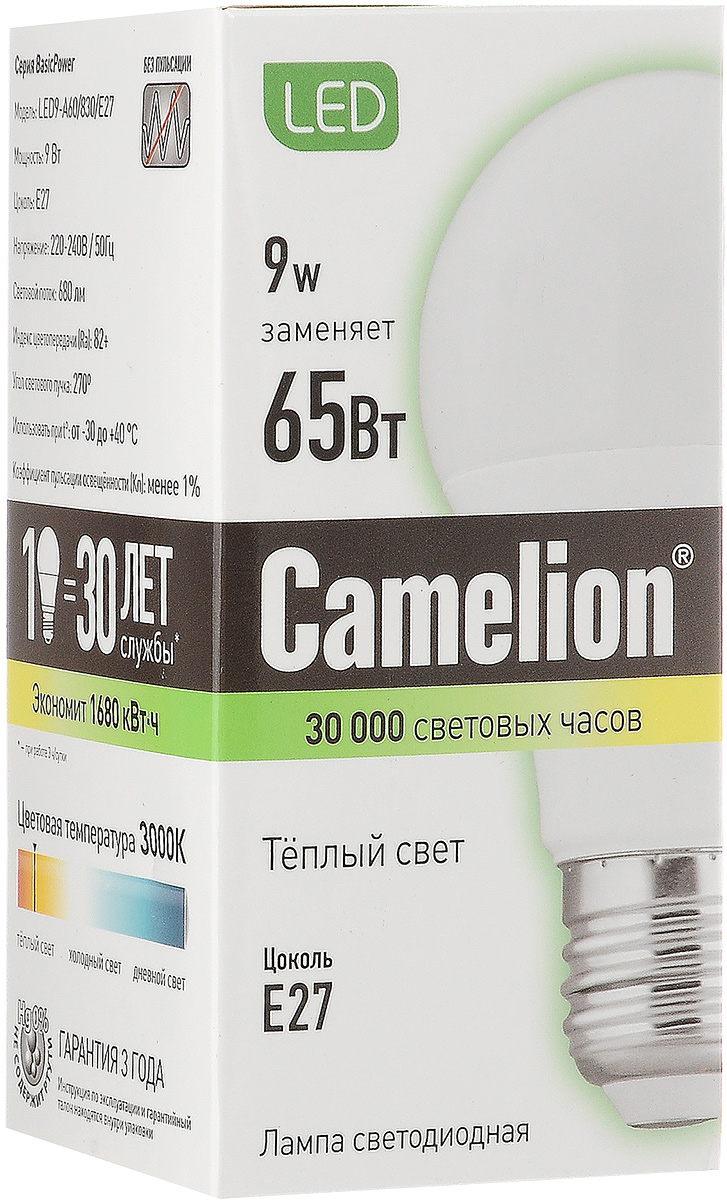 - Эквивалентная мощность лампы накаливания, Вт 65