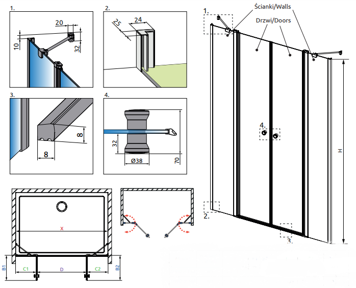Душевая дверь RADAWAY Eos II DWD 83/97 (180)