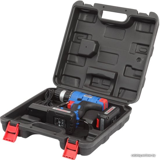 • Комплектация Дрель-шуруповерт;Быстрозажимной патрон;2 аккумуляторные батареи;Зарядное устройство;Руководство по эксплуатации;Кейс.