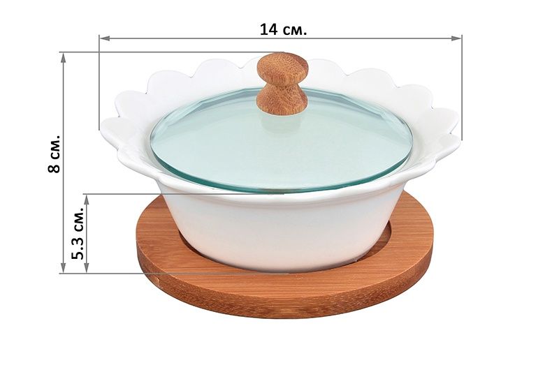 - Комплектация паштетница, стеклянная крышка, деревянная подставка