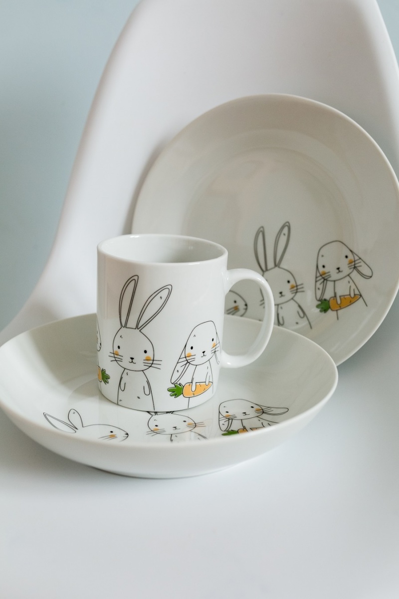 - Состав набора Кружка Bunny 300 мл 1 шт., Тарелка Bunny 20 см 1 шт., Тарелка глубокая Bunny Sans Brides 20 см 1 шт.