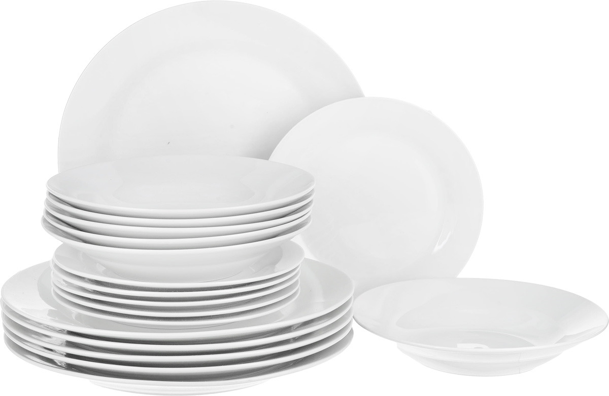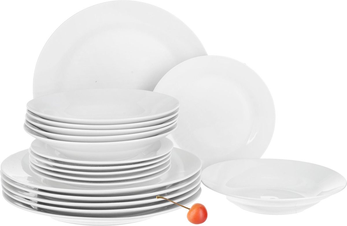 - Комплектация 6 обеденных тарелок, 6 десертных тарелок, 6 суповых тарелок