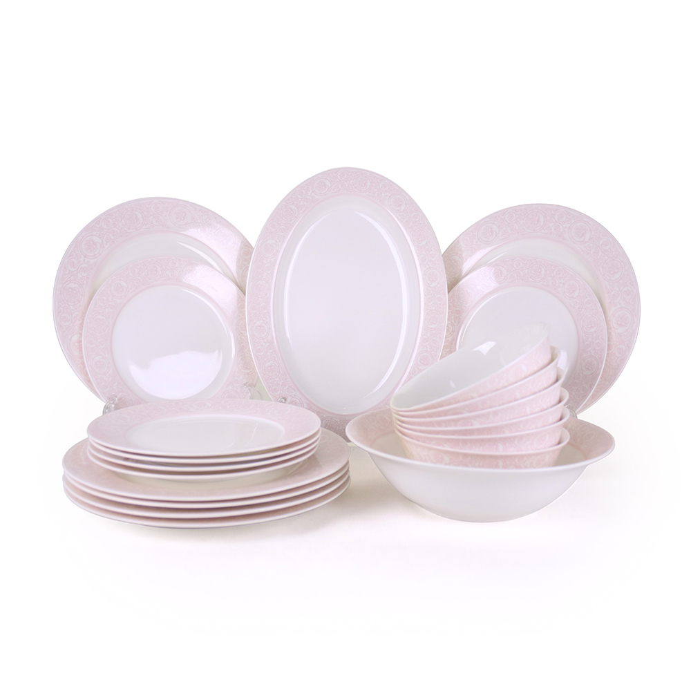 - Состав набора: Количество предметов: 20 Блюдо овальное: длин. 31,2 см., шир. 22,5 см. Салатник большой: 2000 мл. Тарелка суповая: 6 шт, 800 мл. Тарелка закусочная: 6 шт, диам. 20,5 см. Подтарельник: 6шт, диам. 26,5 см.