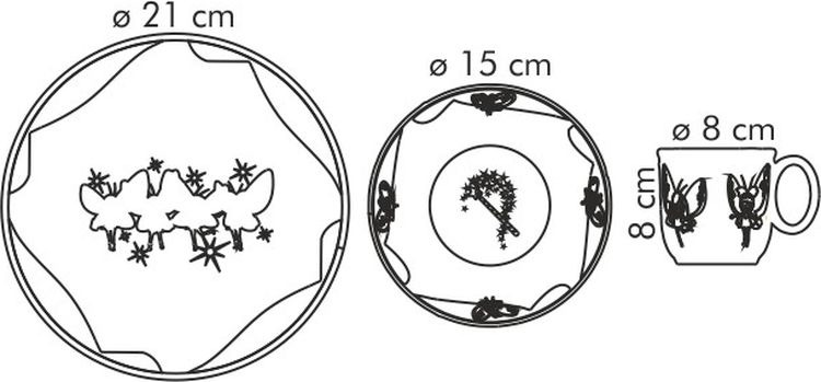- Состав набора 1 кружка, 1 суповая тарелка, 1 обеденная тарелка