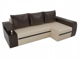 Угловой диван Майами Экокожа Бежевый\Коричневый\Коричневый