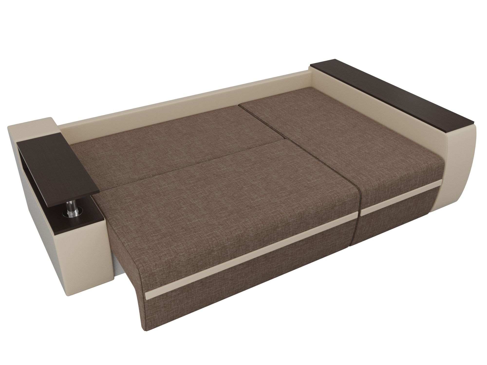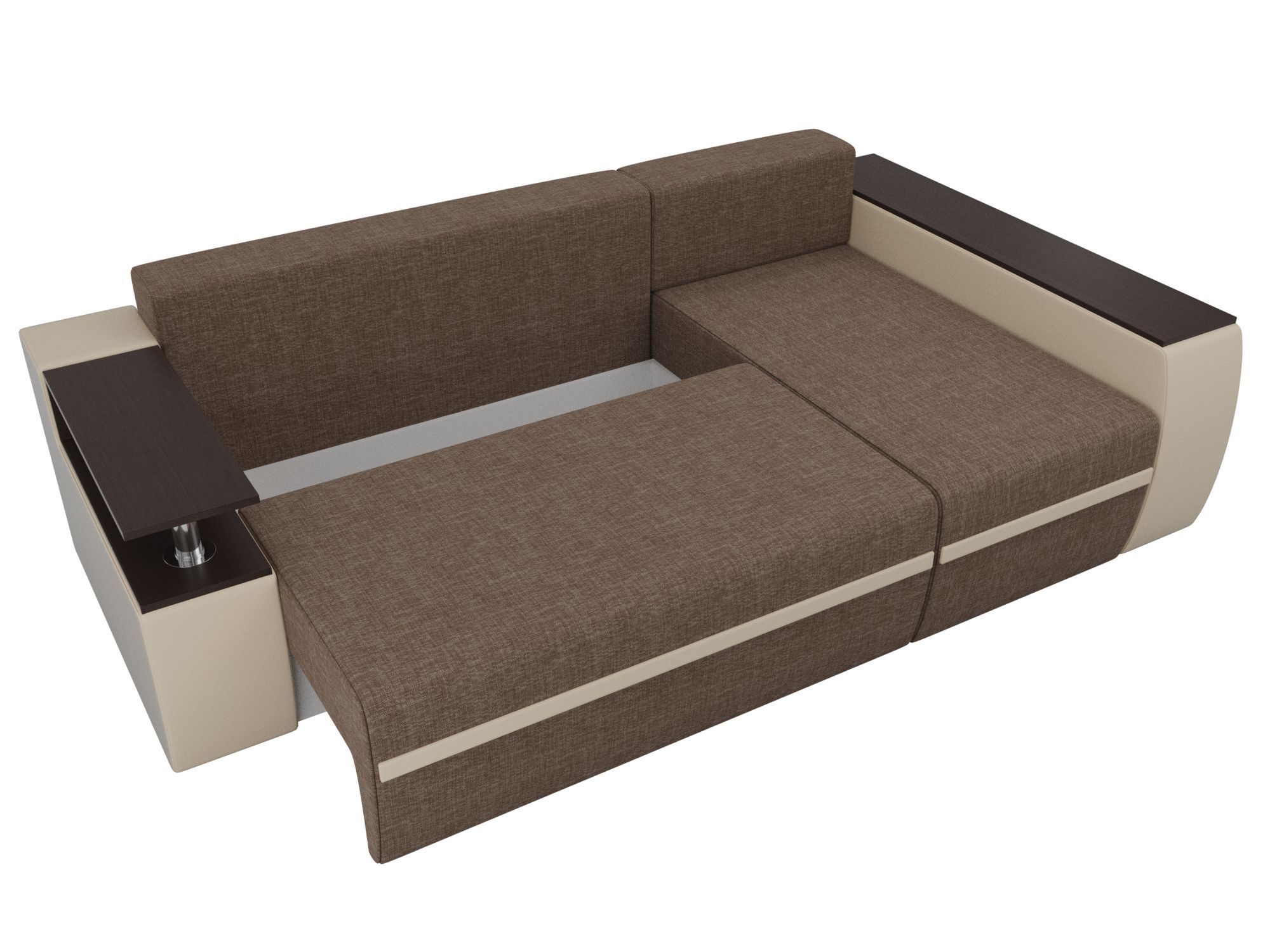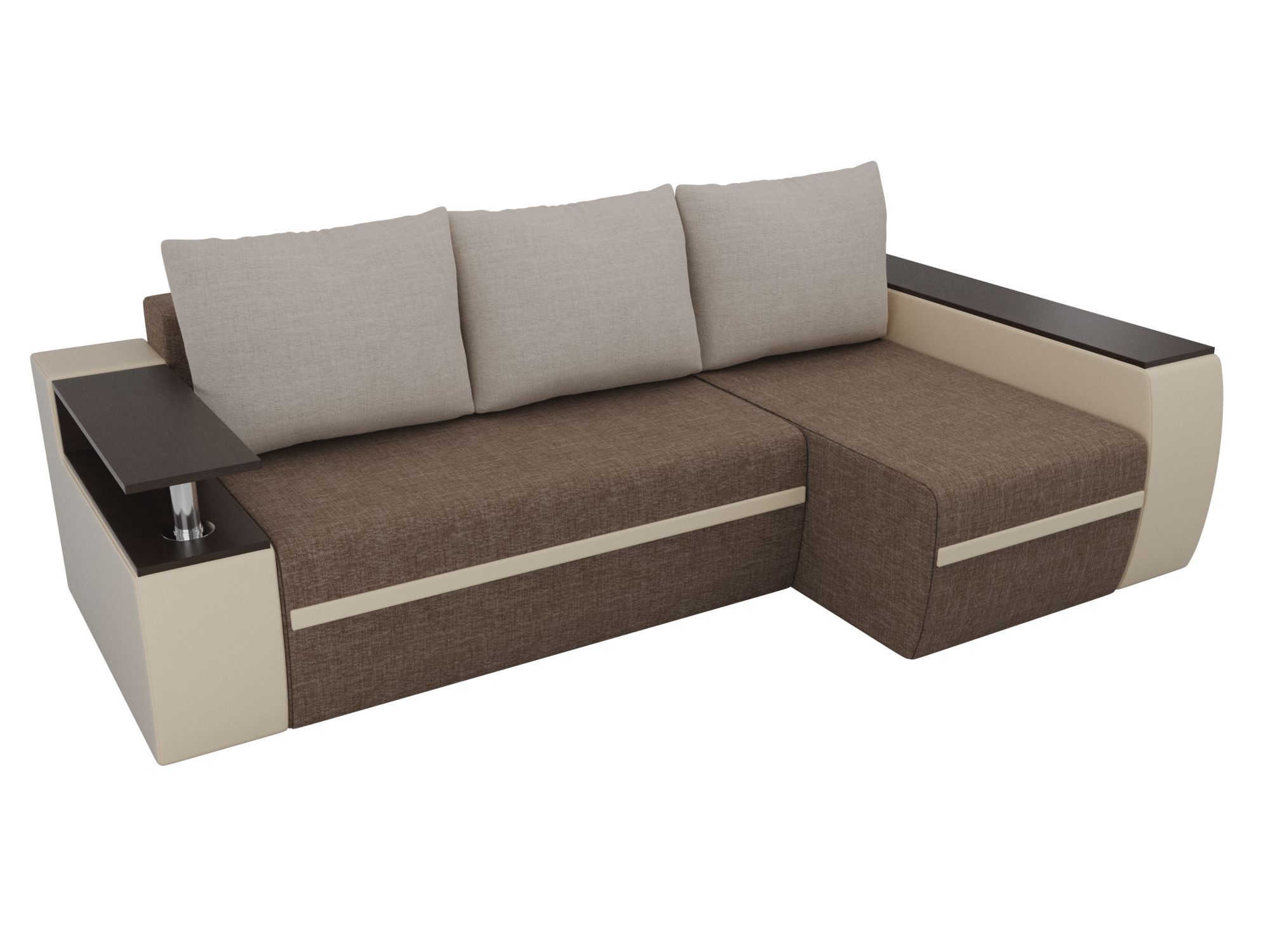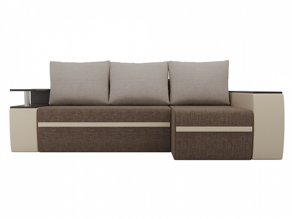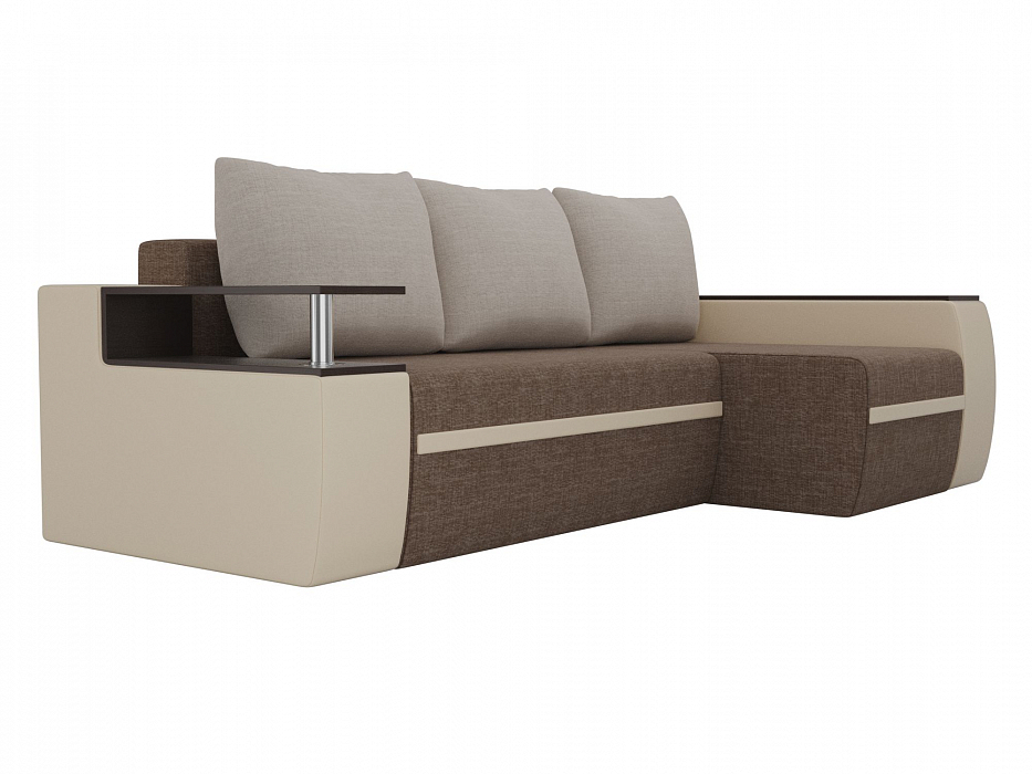 Угловой диван Майами Рогожка\Экокожа Коричневый\Бежевый\Бежевый
