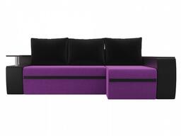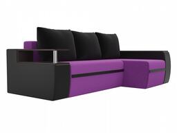 Угловой диван Майами Микровельвет\Экокожа Фиолетовый\Черный\Черный