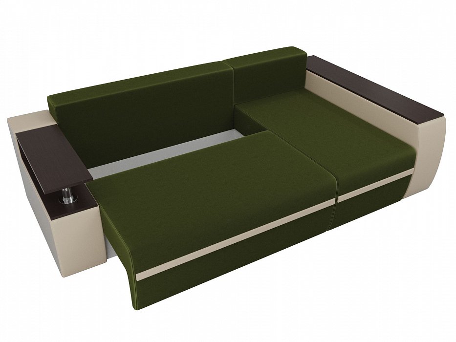Угловой диван Майами Микровельвет\Экокожа Зеленый\Бежевый\бежевый