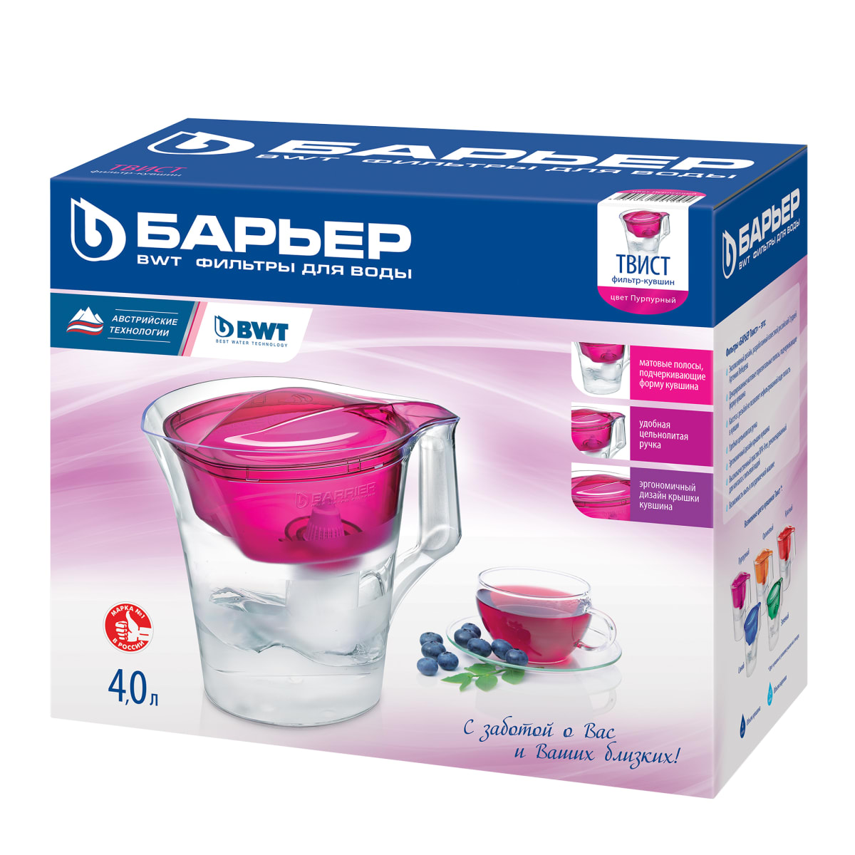 Фильтр-кувшин для очистки воды Барьер Твист 4 л, цвет пурпурный