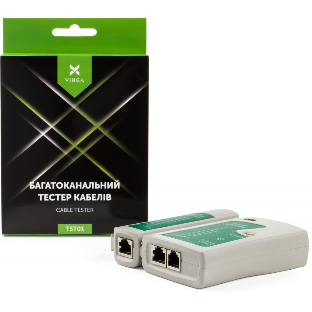 Vinga TST01 - це компактний кабельний тестер RJ-45, RJ-11. Зручний і багатофункціональний прилад для тестування витої пари, коаксіального кабелю.