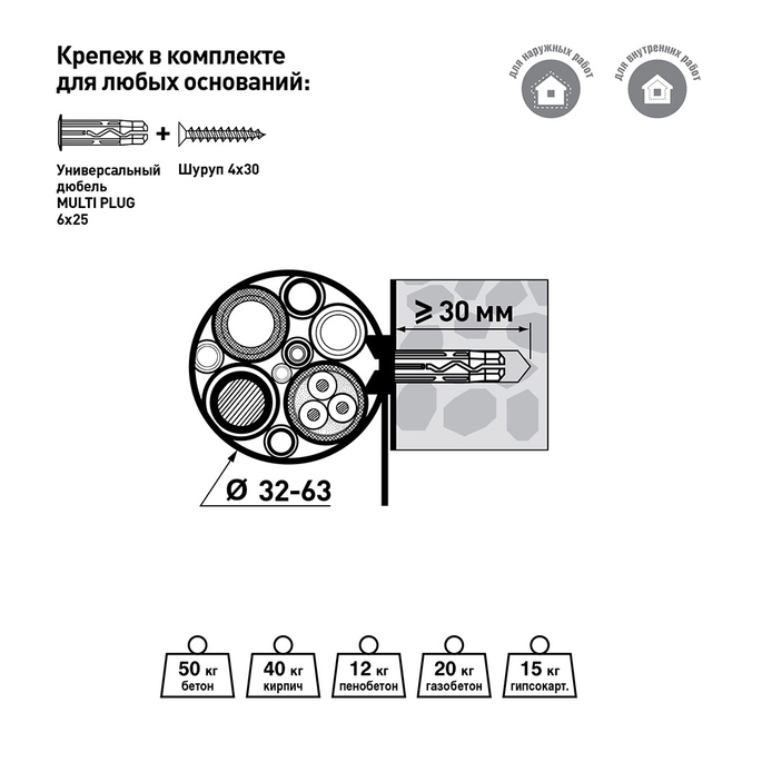 Ремешок для кабеля и труб 32-63 серый (25 шт.)
