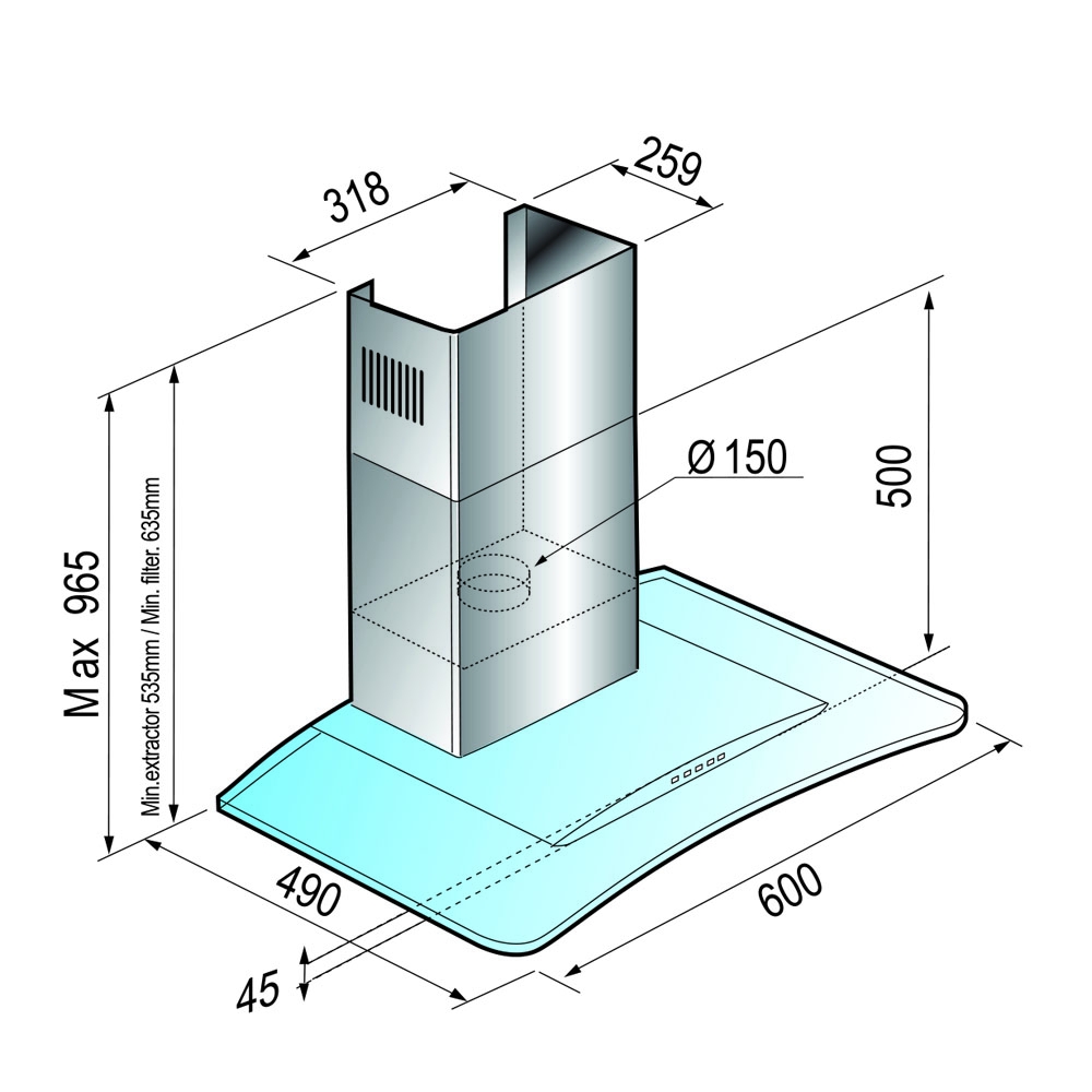 - Диаметр патрубка воздуховода (см) 12-15