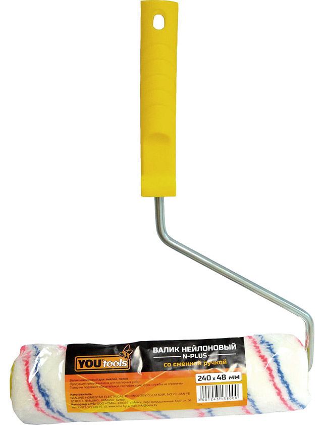 Валик нейлоновый YOURTOOLS N-PLUS 240х48 мм, для эмалей, лаков, со сменной ручкой