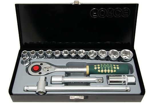 - Наличие в наборе Удлинители 1/2", Трещотка 1/2", Торцевые головки 1/2", Головки свечные