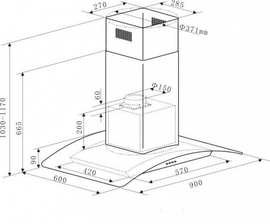 Полная потребляемая мощность составляет 270 Вт, а максимальная производительность 1050 м3/ч, что позволяет работать на кухнях большой площади и эффективно очищать воздух.