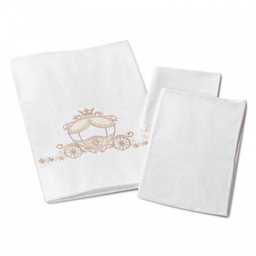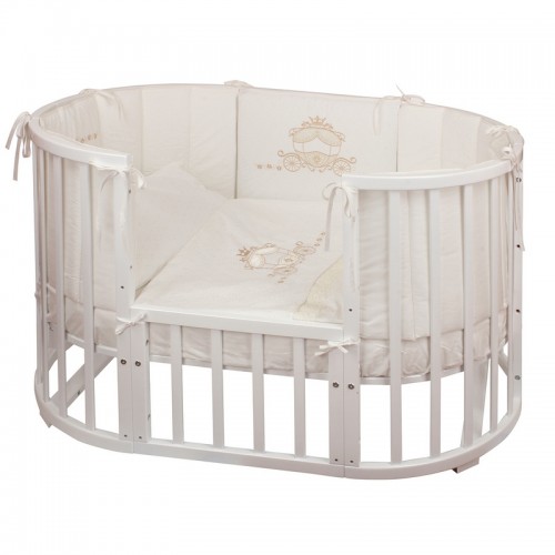 Для маленьких особ королевской крови предназначен прелестный комплект в кроватку с изображением кареты по бокам. Вышивка выполнена с изяществом и гарантирует качество при стирке и в процессе эксплуатации. Комплект состоит из необходимых предметов для малыша.
