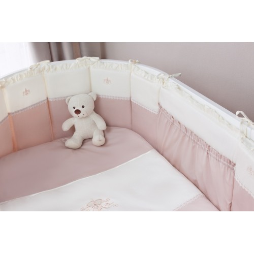 Пододеяльник и наволочка имеют такую же форму, как и подушка с одеялом, что позволяет подчеркнуть изысканный дизайн универсальной кроватки.