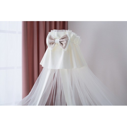 А о безопасности позаботится бампер с надетым на него чехлом из натуральной ткани. Укрывшись одеялом, заправленным в пододеяльник с секретом, мама может быть спокойна: одеяло ни за что не вырвется наружу. Легкий балдахин защитит сон малыша вуалевым облаком.