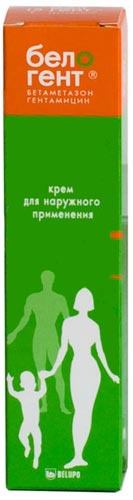 - Показания: Дерматозы, аллергические и воспалительные заболевания кожи с присоединением вторичной бактериальной инфекции или вероятностью ее развития: экзема, атопический дерматит, нейродермит, контактный дерматит (в том числе профессиональный), аллергический дерматит, псориаз, красный плоский лишай, флеботодермия, аногенитальный зуд. Инфицированные дерматиты, развившиеся вследствие укусов насекомых, чесотки, расчесов, ссадин, термических поражений кожи и опрелостей. Пиодермии различной локализации (стрепто-стафилодермии, импетиго, сикоз, эктима). Крем Белогент применяется преимущественно для терапии острых и подострых стадий воспалительных заболеваний кожи, в том числе сопровождающихся экссудацией.