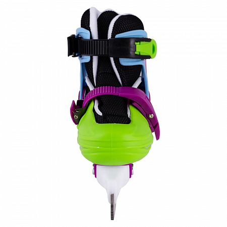 Коньки детские раздвижные Novus ASK-17.12 (для девочек). Жесткий ботинок из морозоустойчивых материалов (температурный режим до -20) и система фиксации из двух клипс хорошо зафиксирую детскую ногу. Стелька EVA отлично держит тепло, что очень важно для детской ножки. Ботинок оснащен удобной системой раздвижки, позволяющей менять размер. Можно забыть о покупке новой пары коньков на несколько сезонов. Хоккейное лезвие из нержавеющей стали поможет юной спортсменке ловко маневрировать на льду, а яркий принт, никого не оставит равнодушным.
