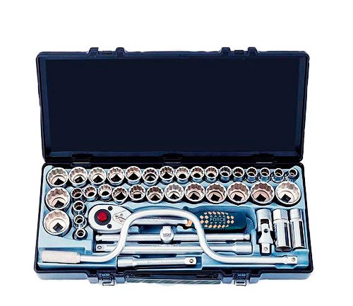 - Наличие в наборе Удлинители 1/2", Трещотка 1/2", Торцевые головки 1/2", Головки свечные