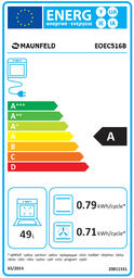 Независимый тип установки, класс энергопотребления А, 7 основных режимов, механическое управление, двойное стекло дверцы, металлическая ручка дверцы, холодный фронт, объем 49 л.