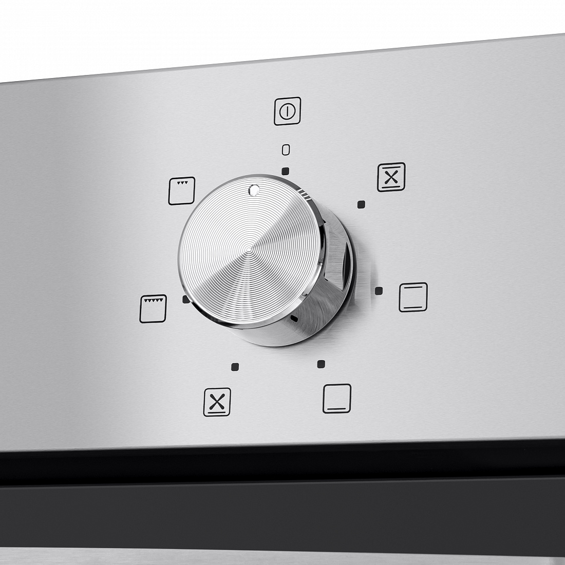 Независимый тип установки, класс энергопотребления А, 7 основных режимов, механическое управление, двойное стекло дверцы, металлическая ручка дверцы, холодный фронт, объем 49 л.