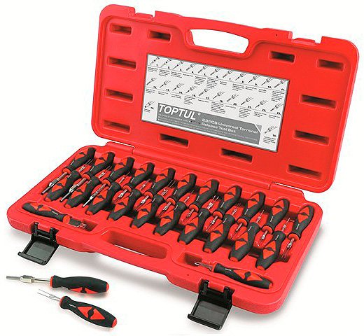 Набор универсального инструмента для снятия клемм состоящий из 23 предметов. Набор в пластиковом кейсе. Предназначен для отсоединения клемм от пластиковых разъемов без повреждения проводки или клеммной колодки. Подходит для любого типа разъема проводки, используемых в автомобиле.