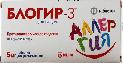 - Дозировка действующего вещества 1 таблетка для рассасывания Блогир-3 содержит активное вещество: дезлоратадин 5 мг.
