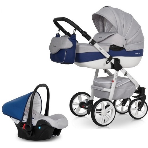 Nano Ecco (3-в-1) - современная, стильная и удобная коляска польского бренда Rico. Ширина алюминиевого шасси составляет 59 сантиметров, что позволяет легко зайти в самый узкий лифт. Ручка для родителей может опускаться или подниматься, в зависимости от роста "водителя", она обтянута приятной на ощупь экокожей, препятствующей скольжению рук.