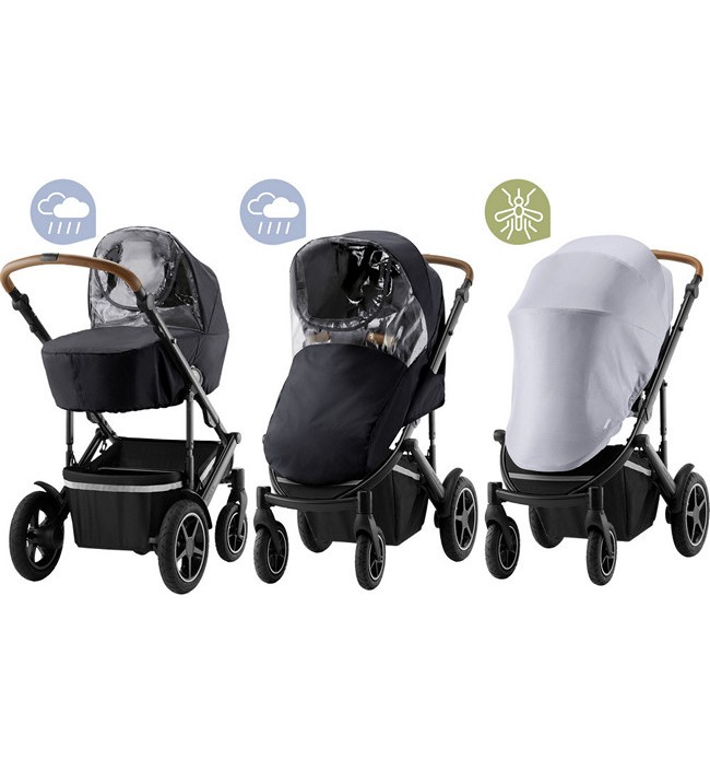В набор входят дождевики для коляски SMILE III и люльки SMILE III. Благодаря им во время путешествий в люльке или коляске ваш малыш всегда будет защищен от ветра и дождя.
