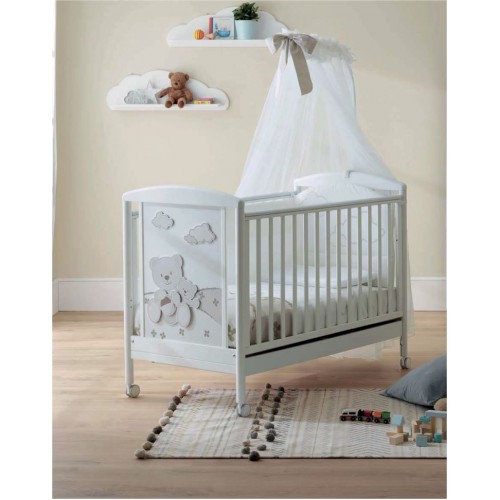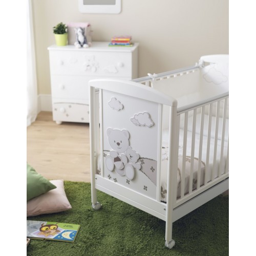 колесики, обеспеченные блокираторами, поэтому кроватку легко перекатить в любую часть комнаты или дома и заблкировать колеса от движения