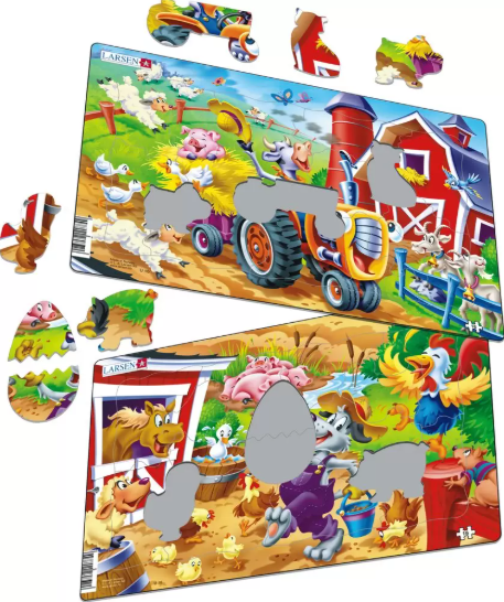 Пазлы Larsen- это не только яркие картинки, прежде всего это обучающие пазлы. Данный пазл состоит из 2 самостоятельных пазлов (продаются отдельно), объединенных общим сюжетом. На них красочно и живо изображены домашние животные и птицы на скотном дворе. Многообразие форм вырубки и различные размеры отдельных элементов способствуют развитию мелкой моторики у малышей.