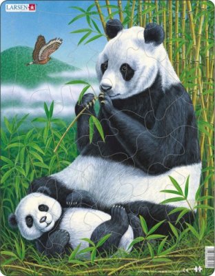 Пазлы Larsen - это не только яркие картинки, прежде всего это обучающие пазлы. Они знакомят детей с представителями живой природы. Звери и их детеныши, среда их обитания и повадки переданы с фотографической точностью. Многообразие форм вырубки и различные размеры отдельных элементов способствуют развитию мелкой моторики у малышей.