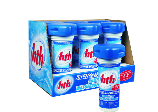 Комплексный препарат hth от производителя Arch Water Products осуществляет полную очистку воды в плавательном бассейне объёмом 30-50 кубических метров в течение от 1 до 2 месяцев. В зависимости от выбранного отверстия дозатора, температуры воды или времени фильтрации, растворение препарата, содержащегося в дозаторе, может составить плюс/минус 2 недели. Состав: препарат содержит трихлоризоциануровую кислоту.