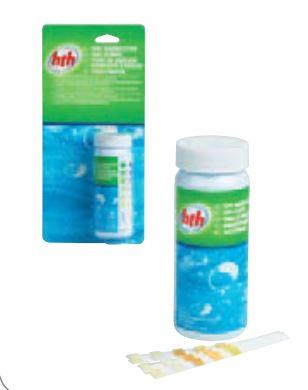 Тестовые полоски (A890217H1), предназначенные для исследования воды в бассейнах и СПА. Помогают определить общий уровень показателей брома, хлора, уровня кислотности и общей щелочности воды.