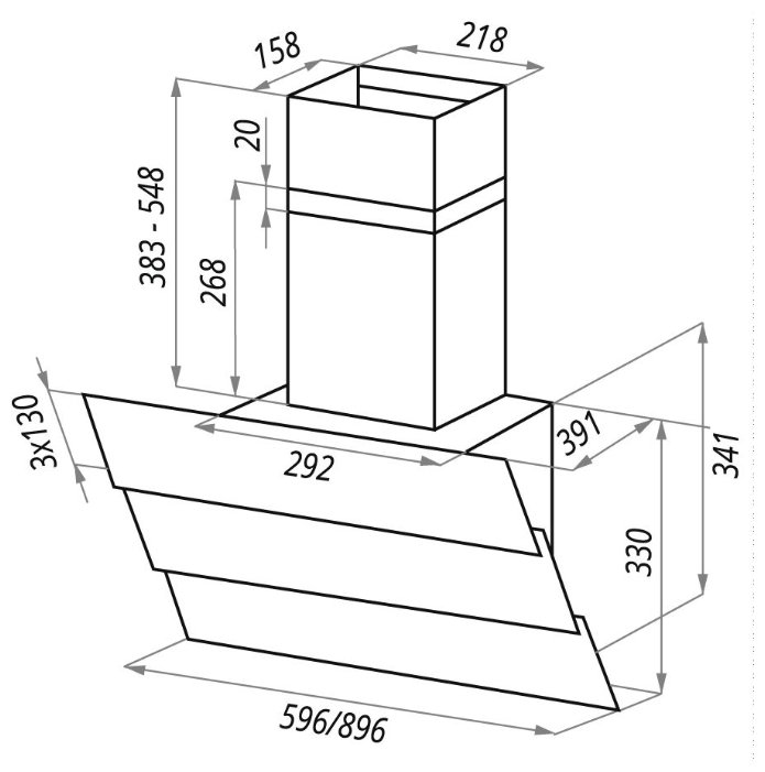 - Дополнительная информация Конструкция наклонная, монтаж настенный, управление механическое/кнопочное, производительность мотора 620 м³/ч, ширина 59.6 см