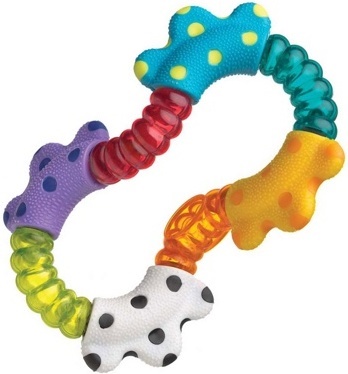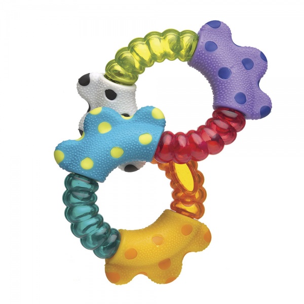Погремушка разработана специально для маленьких детских ручек: ее удобно хватать, а диаметр составляет около 1.7 см. Сама игрушка имеет множество рельефов, которые малыш сможет щупать, развивая тактильные ощущения. Яркие цвета призваны не только привлечь внимание малыша, но и развить его цветовосприятие. Игрушка также прекрасно развивает мелкую моторику рук малыша. На игрушке имеются прорезыватели, которые помогут снизить неприятные ощущения при прорезывании первых зубок.