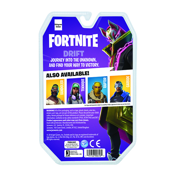 Drift (Дрифт) – скин в игре Fortnite. Фигурка представлена персонажем, одетым в кофту с капюшоном, стильный золотой плащ, черные брюки и футуристичные ботинки. Фигурка имеет 28 точек артикуляции и аксессуар в виде оружия. Фигурка имеет реалистичный внешний вид и детальную проработку всех деталей.